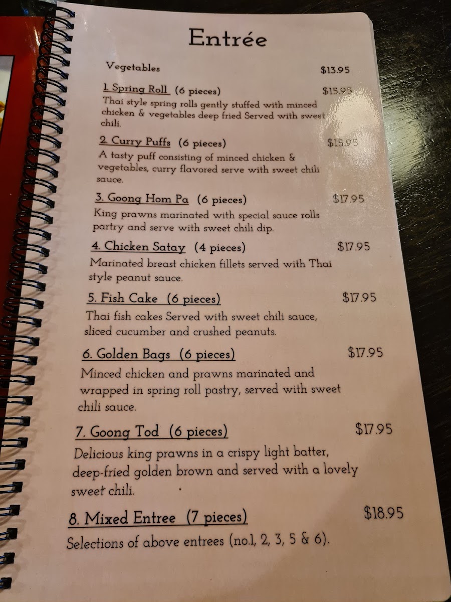 “ Great food and friendly service. The food came out fairly quickly despite the restaurant being very busy. We had the mixed entree and the duck curry is so delicious!! We saw a lot of people ordering the prawns stir fry which looked really good, would love to try it next time! ”