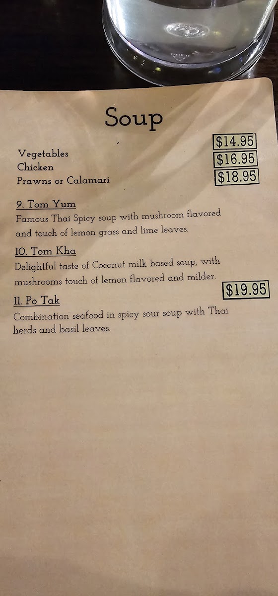 At Ruby Modern Thai, the culinary experience begins with their signature soups. Take the Tom Yum, a fiery blend of spicy flavors with mushrooms, lemongrass, and lime leaves that awaken the senses. Or perhaps the Tom Kha is more to your liking, a creamy coconut-based broth that offers a milder yet equally delightful contrast. The Po Tak is a standout, featuring a medley of seafood infused with Thai herbs and basil, a dish that truly captures the essence of coastal Thai cooking.